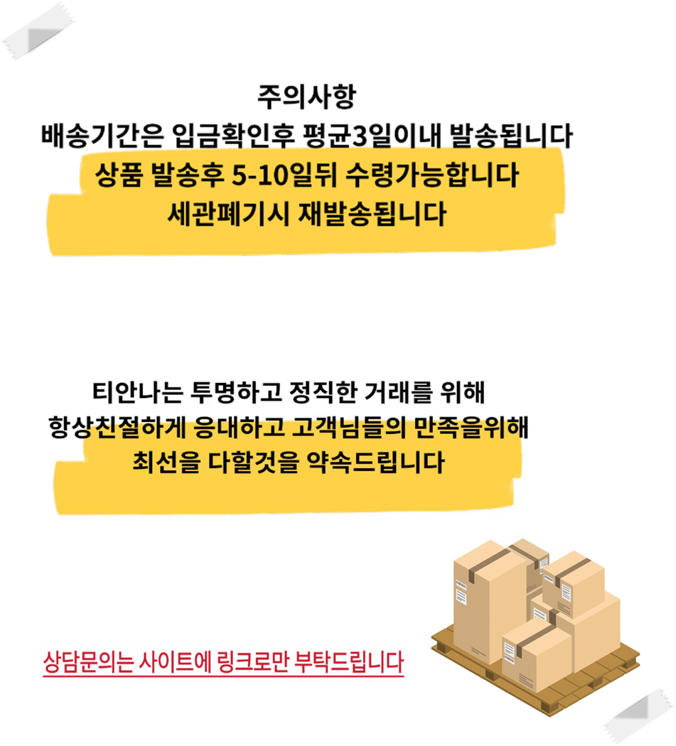 ※ 배송기간은 평균 5-10일좌우 소요됩니다 ( 단순변심으로 인한 환불,취소, 제품변경,불가능합니다)