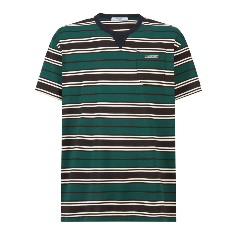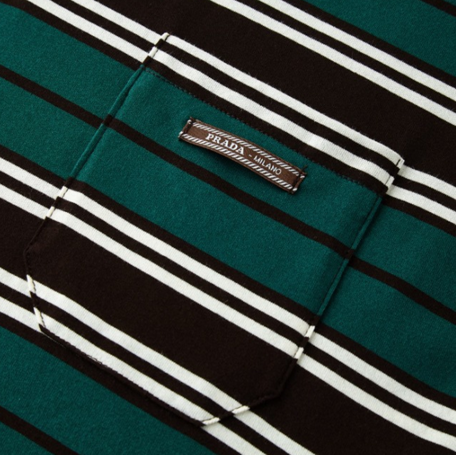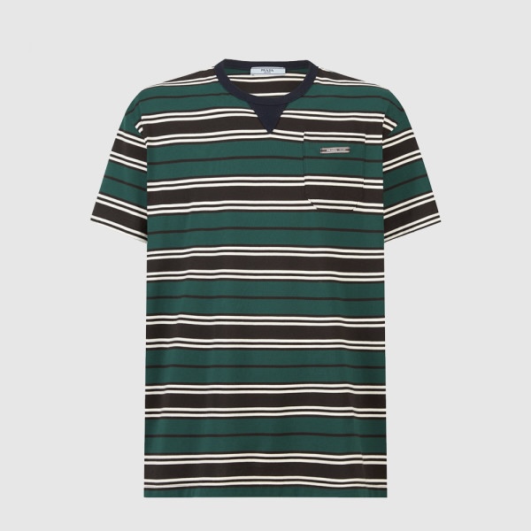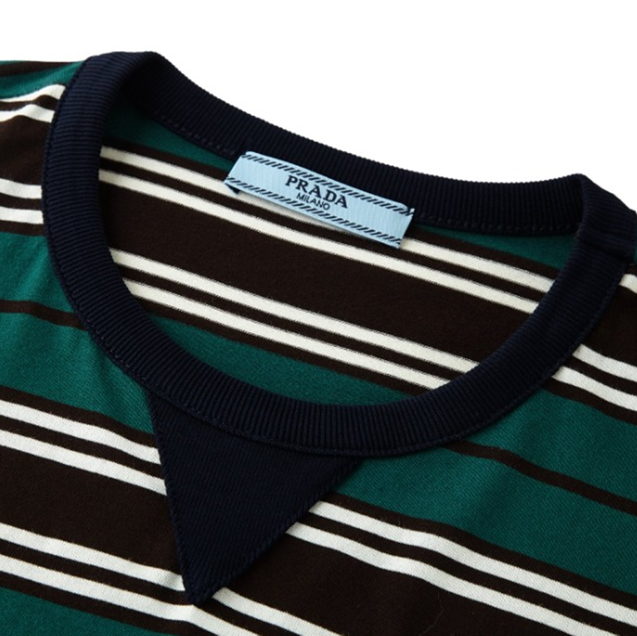 프라다 스트라이프 라일 코튼 티셔츠