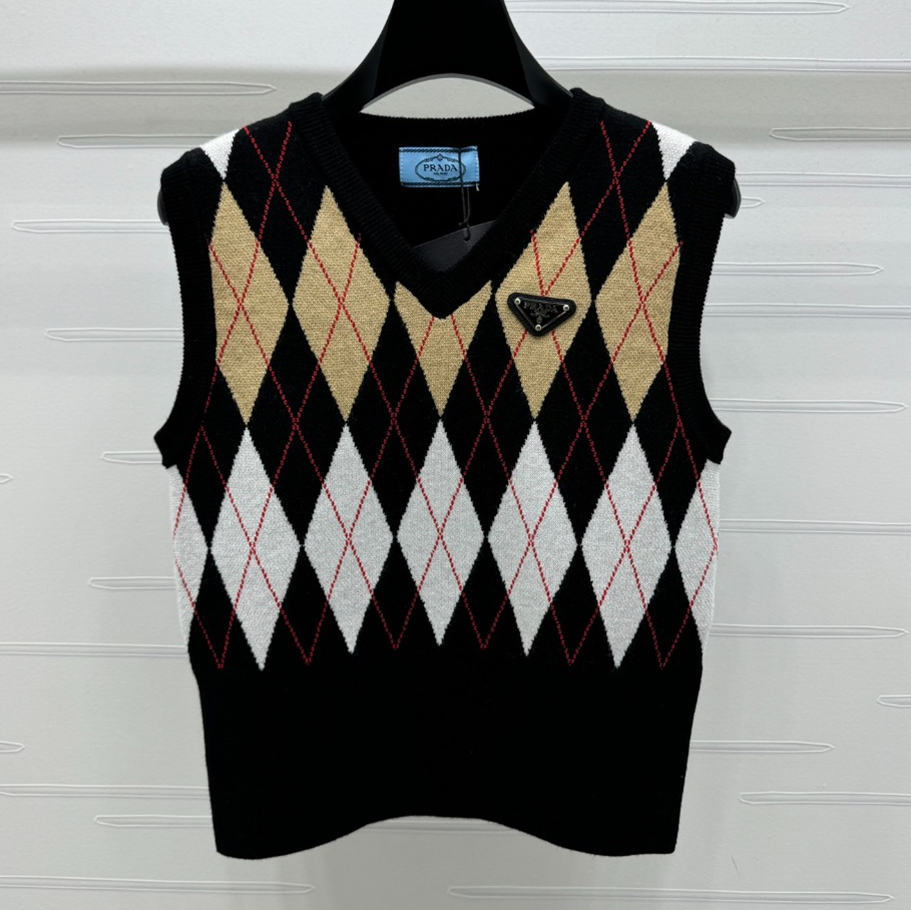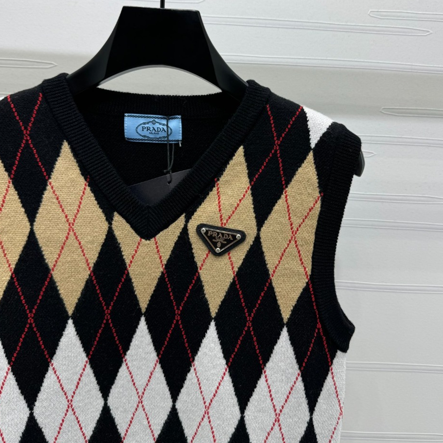 프라다 아가일 조끼