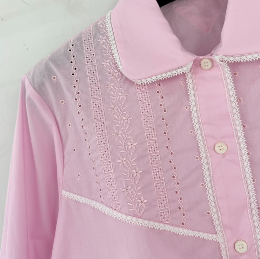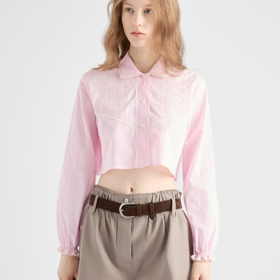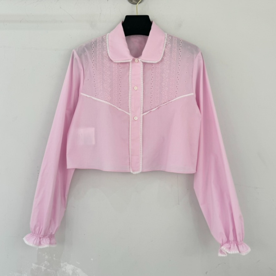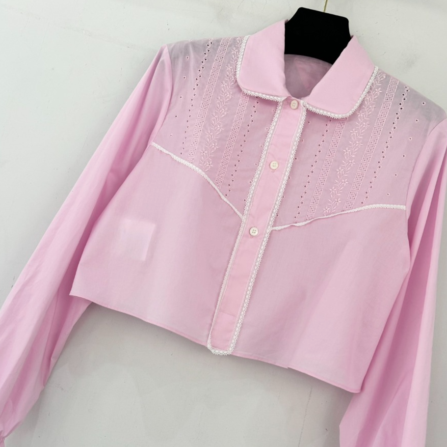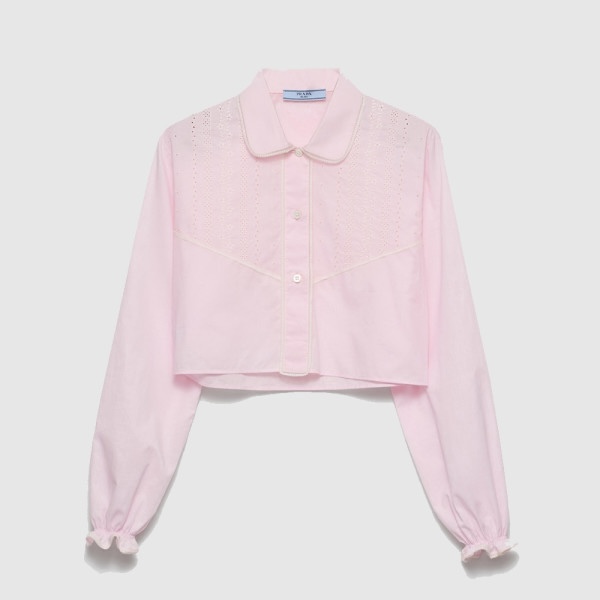 프라다 자수 크롭 바티스트 셔츠
